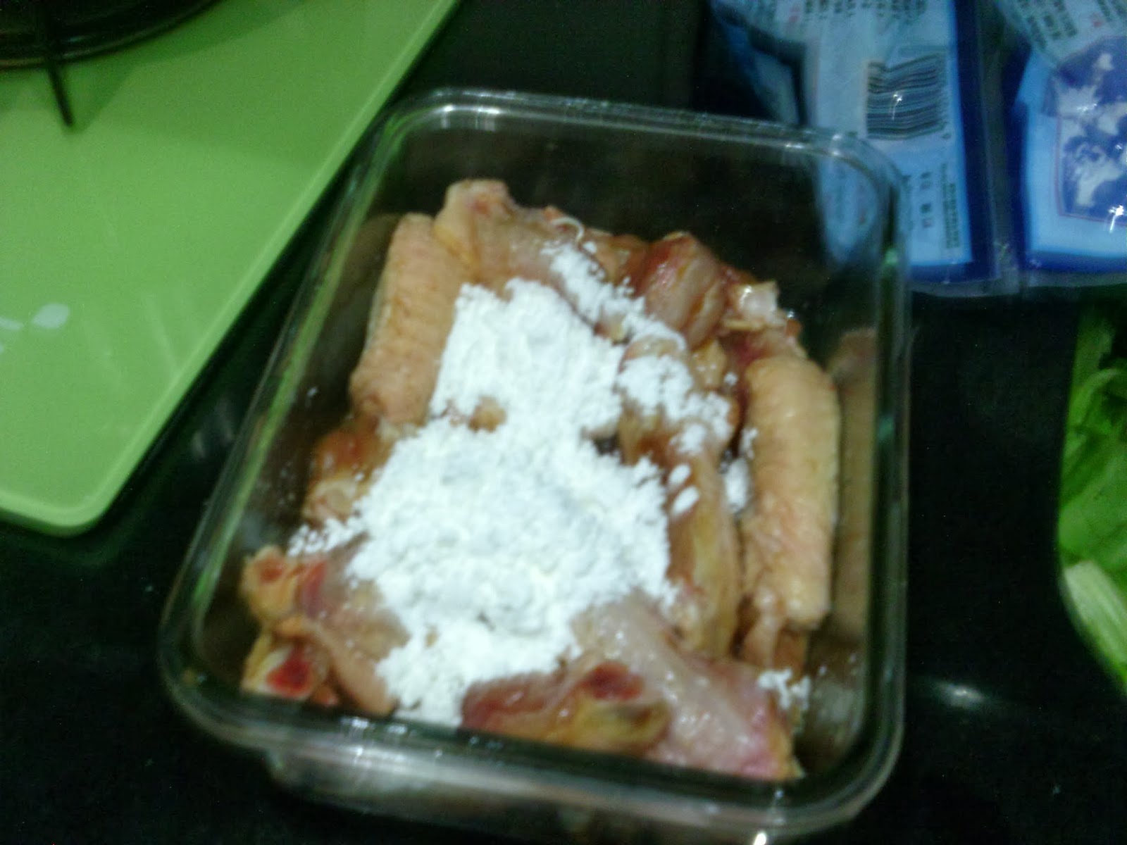 先將雞翼用鹽水解凍會快d